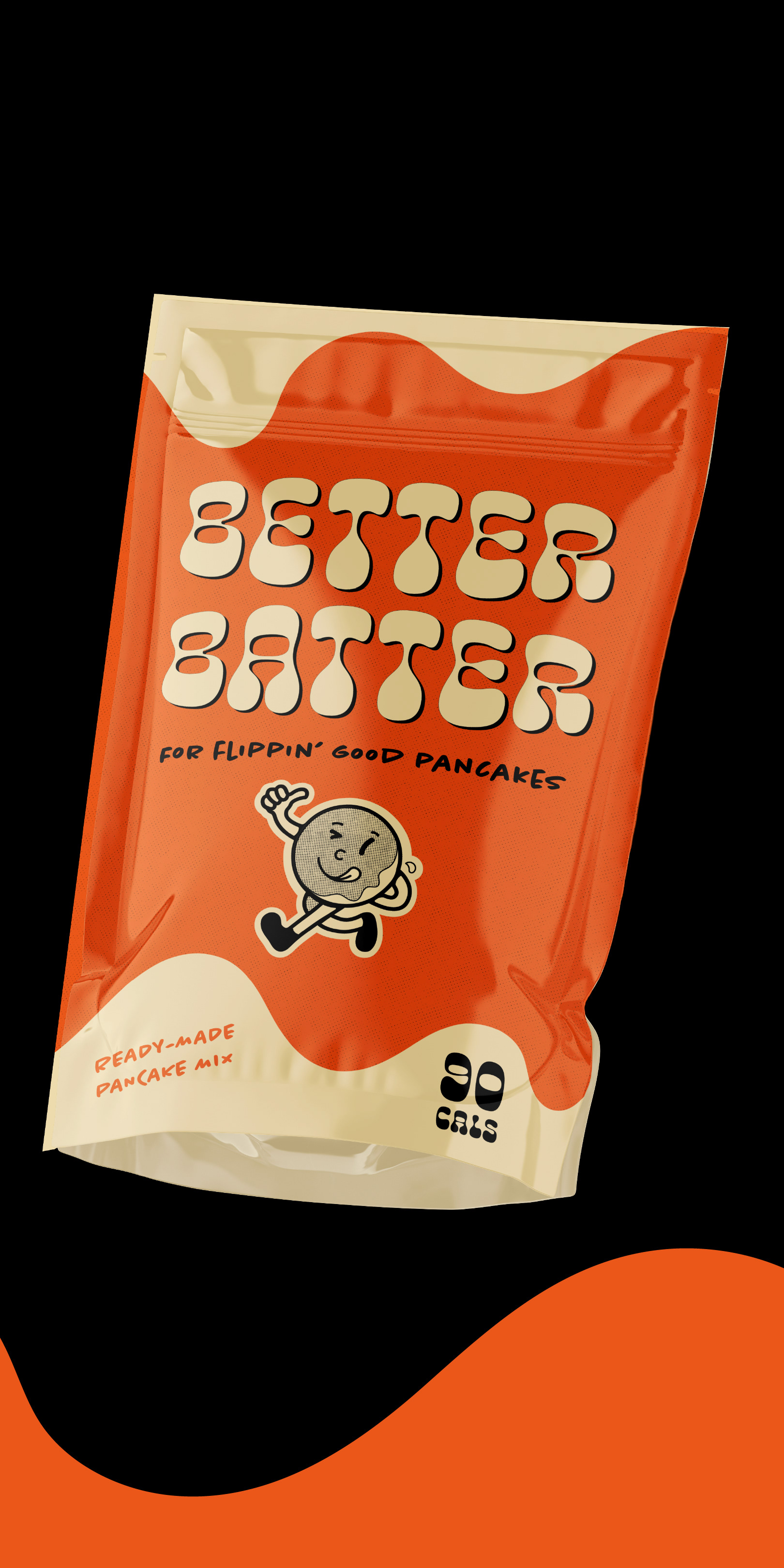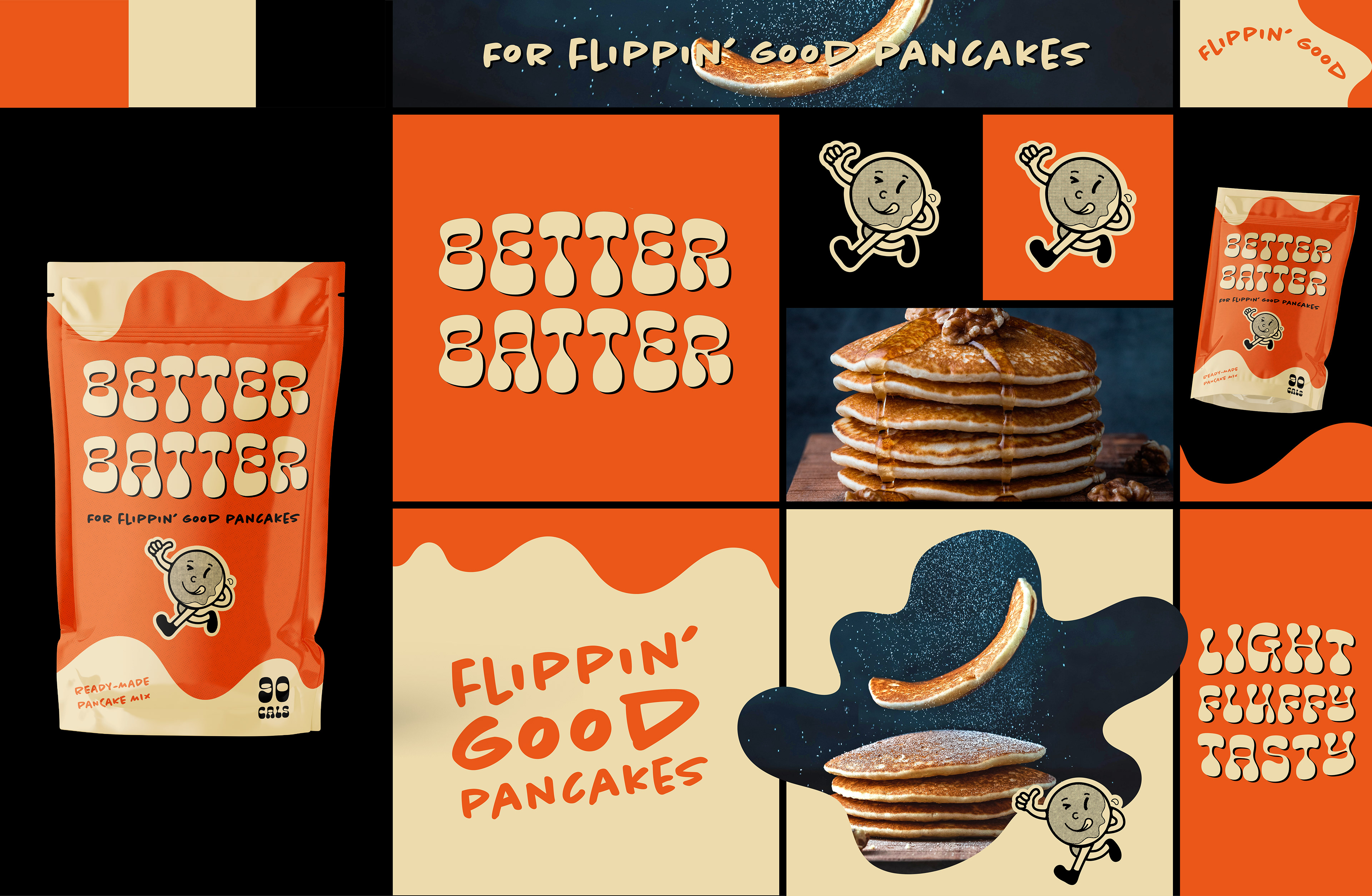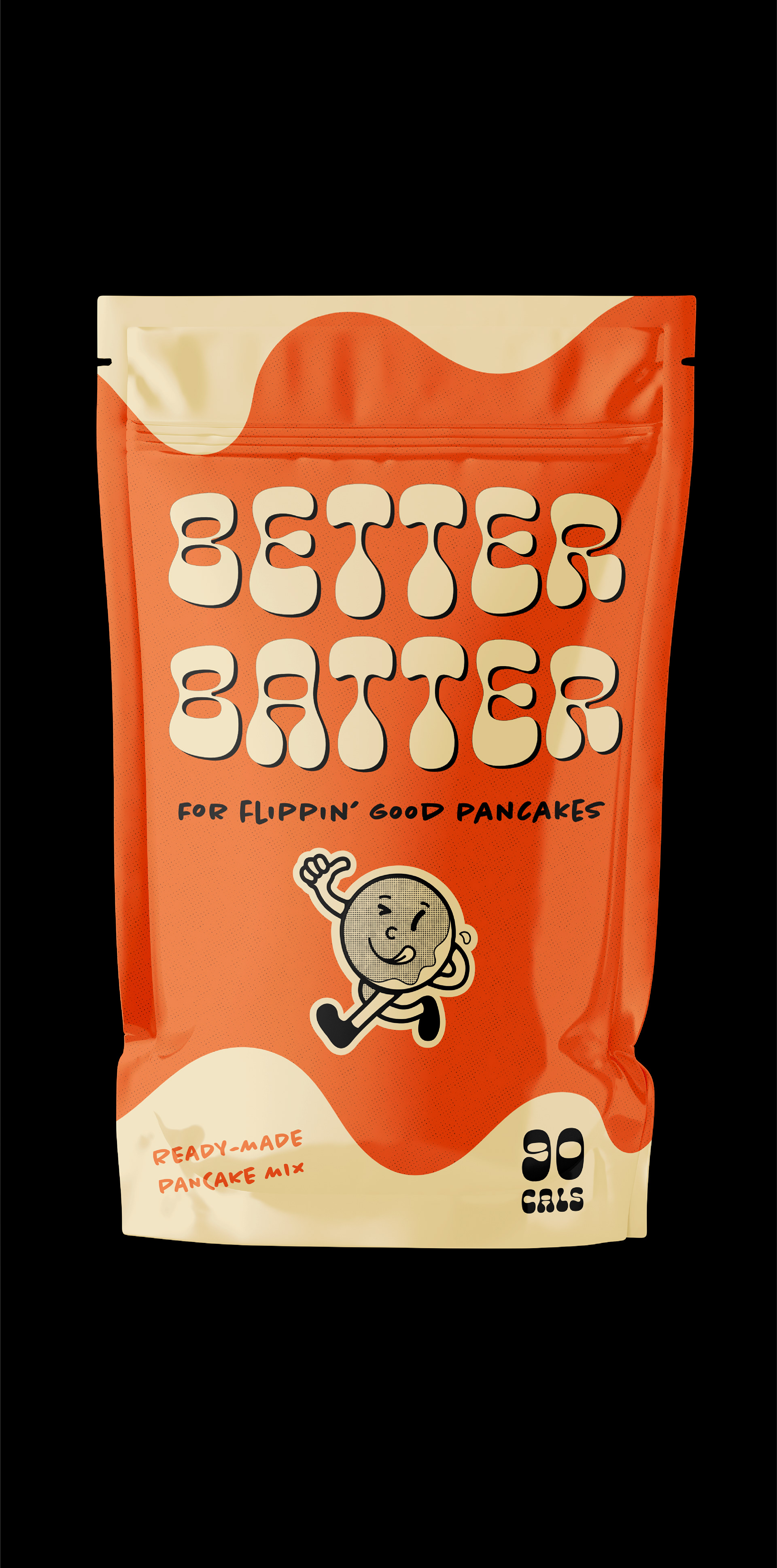Identity and packaging design for Better Batter, a trendy pancake mix brand aimed at Gen Z's and Millenials.