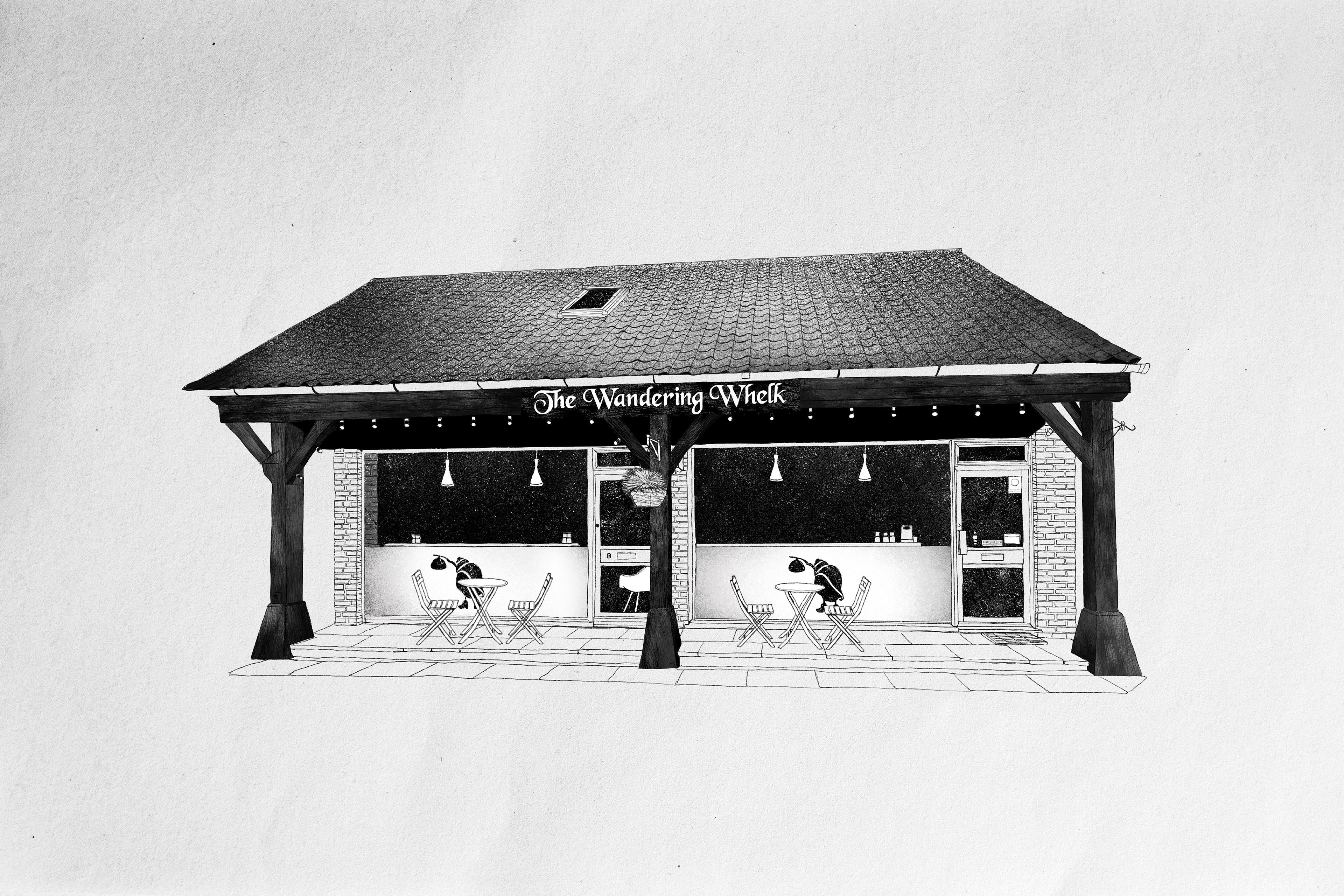 Digital Illustration of The Wandering Whelk Cafe in Holt, Norfolk.